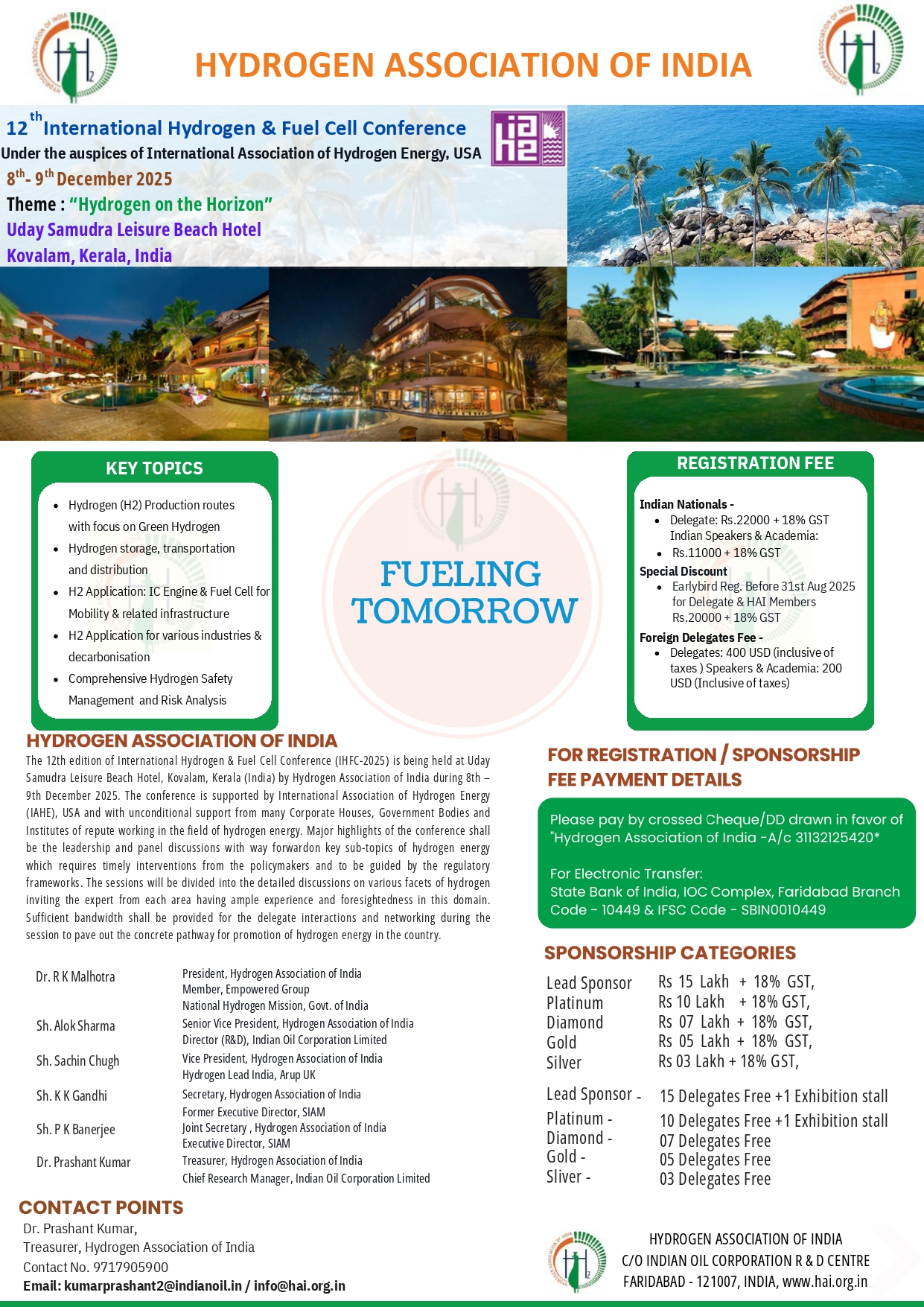 There have been some issues of concern to both the electrolyser manufacturers and Hydrogen producers. In order to deliberate such issues and challenges faced by the industry, we at HAI have planned a Round Table meeting with stakeholders at 6:30pm on Monday, 10th November 2025. Those who can contribute can contact at president@hai.org.in.